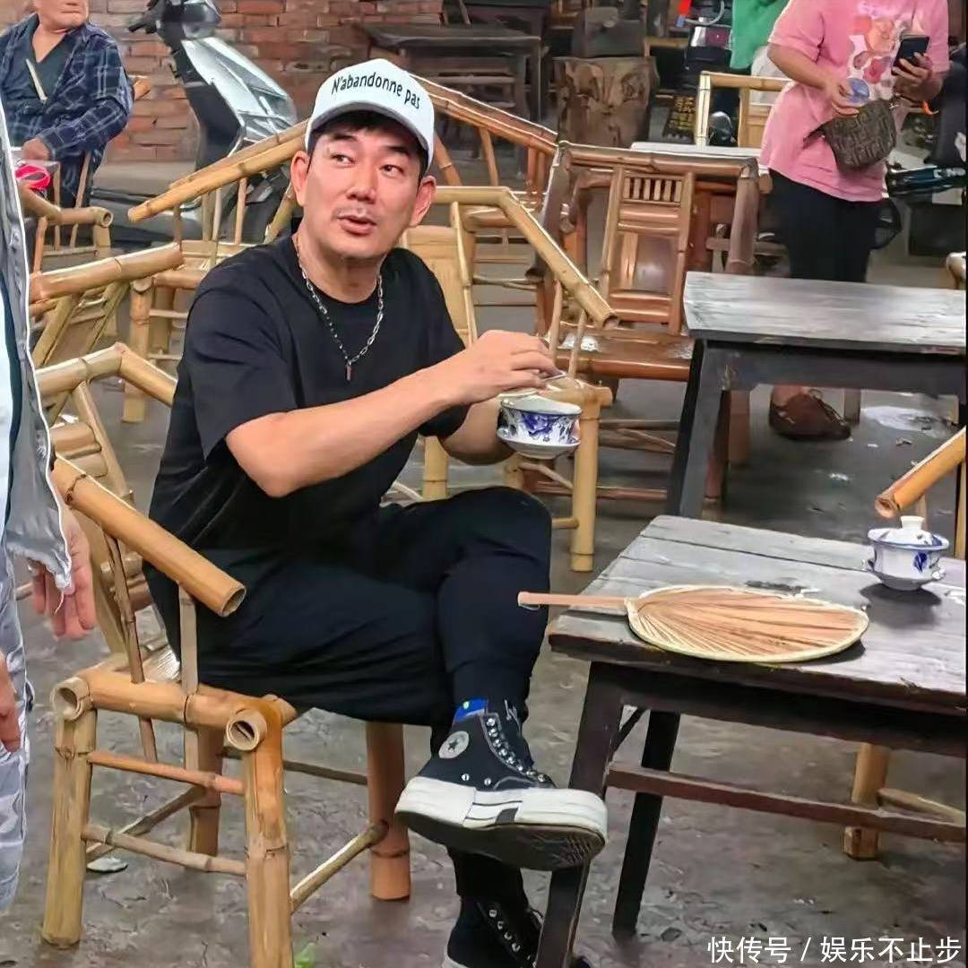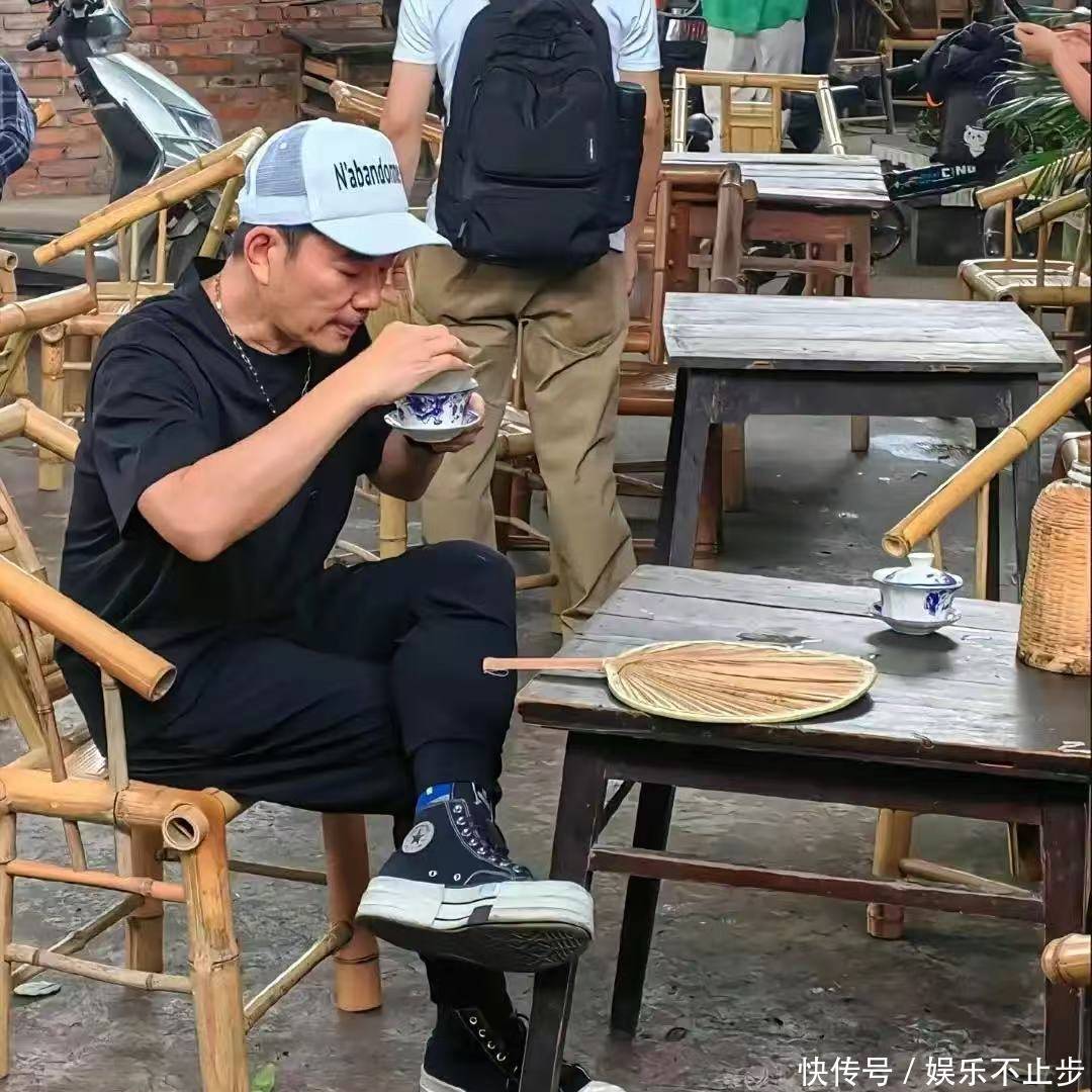 没有刻意追求时尚感,更没有精心修饰,而是带着一种随遇而安的自在感,完全没有明星的架子。路边摊本就人来人往,当任贤齐和团队在竹椅上落座时,很快就吸引了不少路人的目光。有人认出他后兴奋地打招呼,也有人忍不住举起手机拍照。他并没有表现出任何不耐烦,而是礼貌回应,继续慢慢品着手中的茶水。